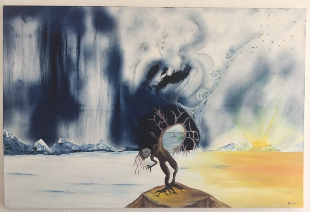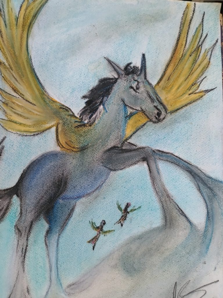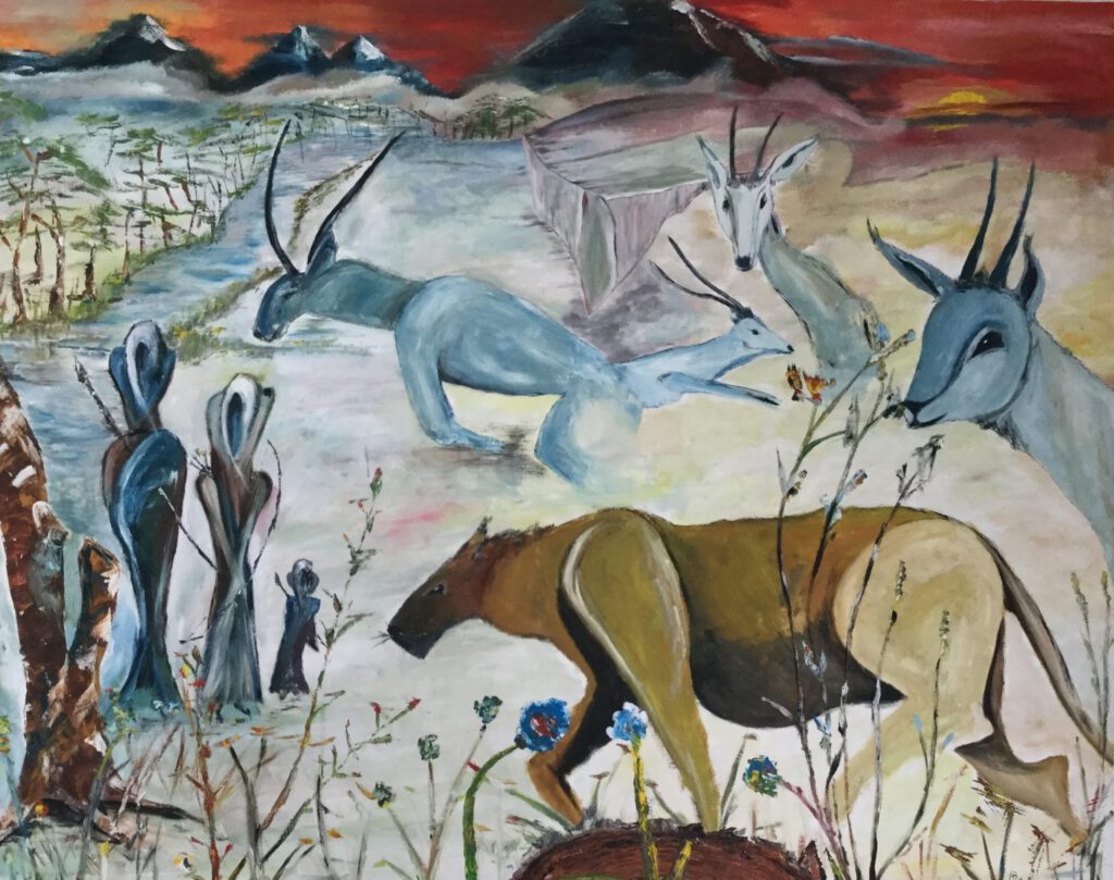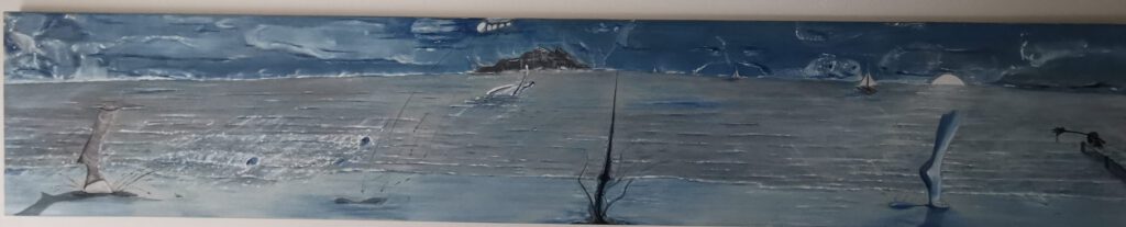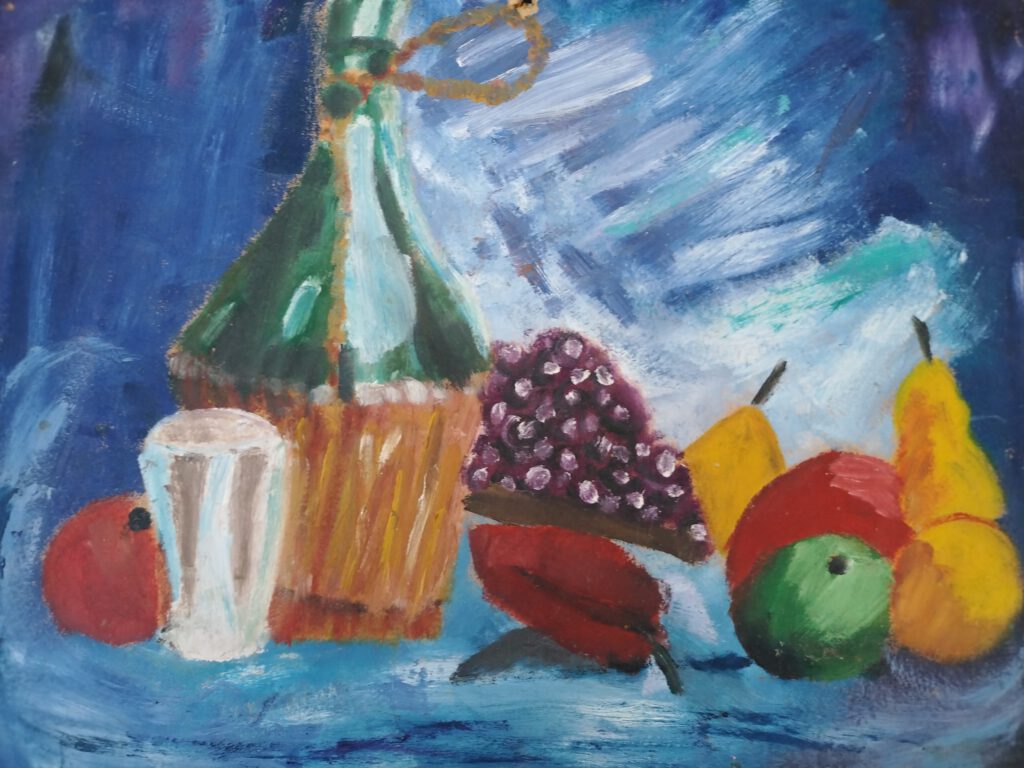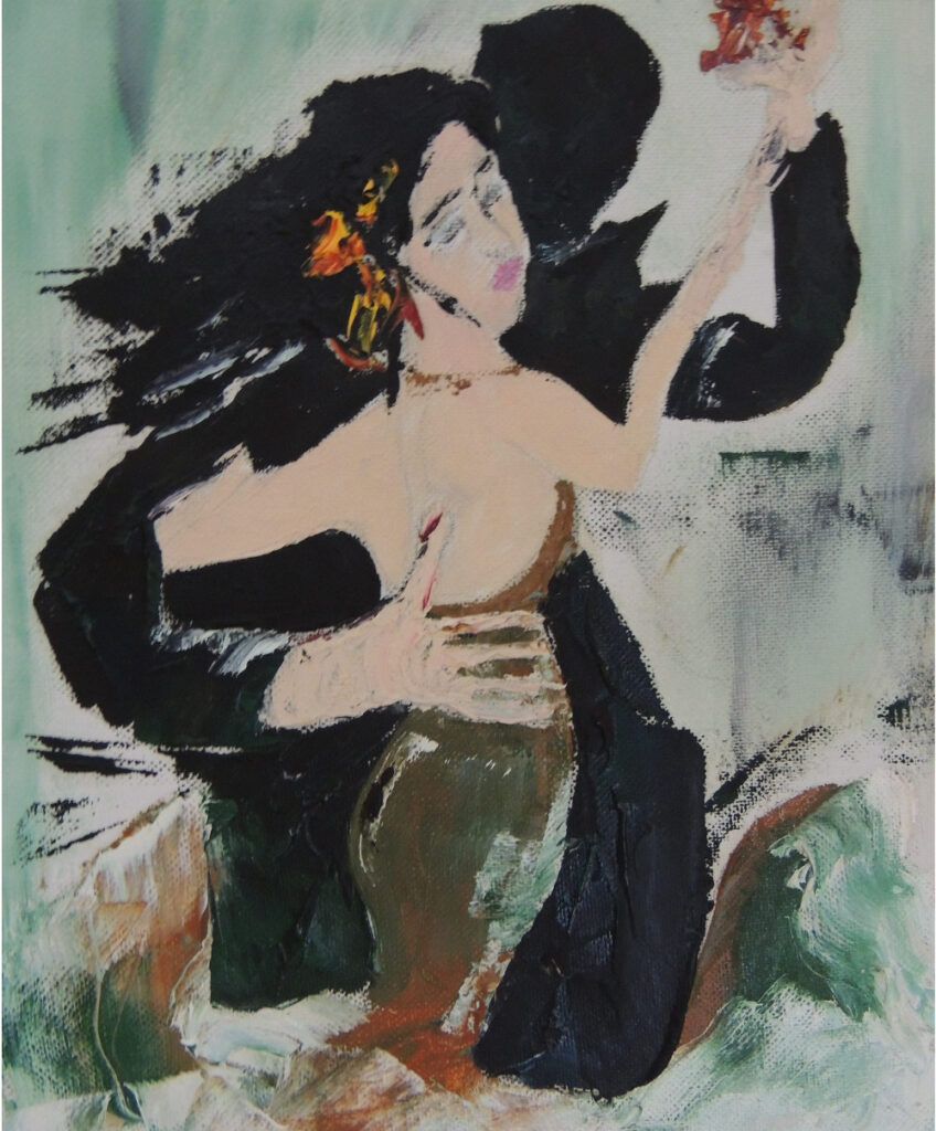 Bodegón con vino y fruta – Óleo sobre cartón – 1971 (Mi primer cuadro al óleo)El pueblo hundido -Óleo sobre cartón – 1972Pegaso – Óleo sobre cartónPaisaje con río, 1982 – Acuarela, carboncillo sobre papelBetsabé – Óleo sobre cartónGallinas – tinta sobre cartón – 1985Tiburón – tiza pastel, acuarela, lápiz carbón sobre papel En la jungla – piedra, madera, cera, arena, hojas textiles, pigmentos de color, tiza pastel sobre madera – 1997Cabalgata del fuego -Talla de madera, pintura al óleo sobre madera – 2001Punto de vista -Pastel tiza, acuarela sobre papelEscena de caza – óleo sobre telaGota – acuarela con tintaGoldfish – Salsa de tomate sobre mantel – 2023Pauli & Lulu – tiza pastel, acuarela sobre papel – 2024Marc – 2004 – tiza pastel, acuarela, lápiz carbón sobre papelGrullas – tiza pastel, acuarela, acrílico sobre papel – 2022Salida mano a Mano -óleo sobre telaSobre el abismo -óleo sobre telaPaz -óleo sobre telaEste es el camino -óleo sobre telaLa vista – óleo sobre telaOblitus contemplationi -óleo sobre telaYa te veo -óleo sobre telBailarina – óleo sobre telaEl baile de salsa – óleo sobre telaEl baile del tango -óleo sobre telaLiam – Pastel tiza, acuarela sobre papelCuando aún era joven (autorretrato) – tiza pastel, lápiz, carboncillo sobre papel – 1984Vuelo – óleo sobre tela –> Klick